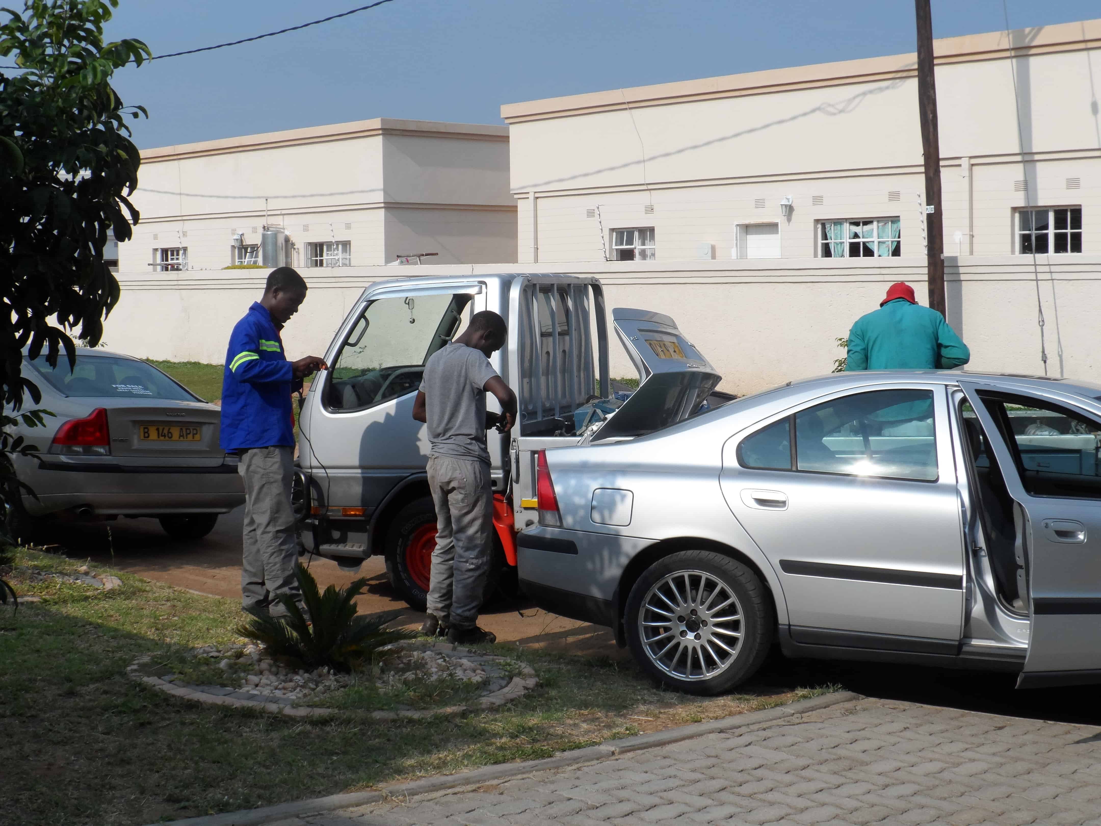 Med muren oppe og vagten installeret i et shelter eller lille blikskur i et hjørne på grunden, kan udgravningen til sokkelen tage sin begyndelse og her er det så at det er godt at have en lastbil. En lastbil er alt hvad der har et lad, uanset størrelsen, så kan de bruges til transport af et eller andet og er i høj kurs. Enhver fremadstræbende afrikaner med en lille smule drive, har en truck, så han kan køre med varer om ikke andet så for andre og tage sig lidt betaling for det…
