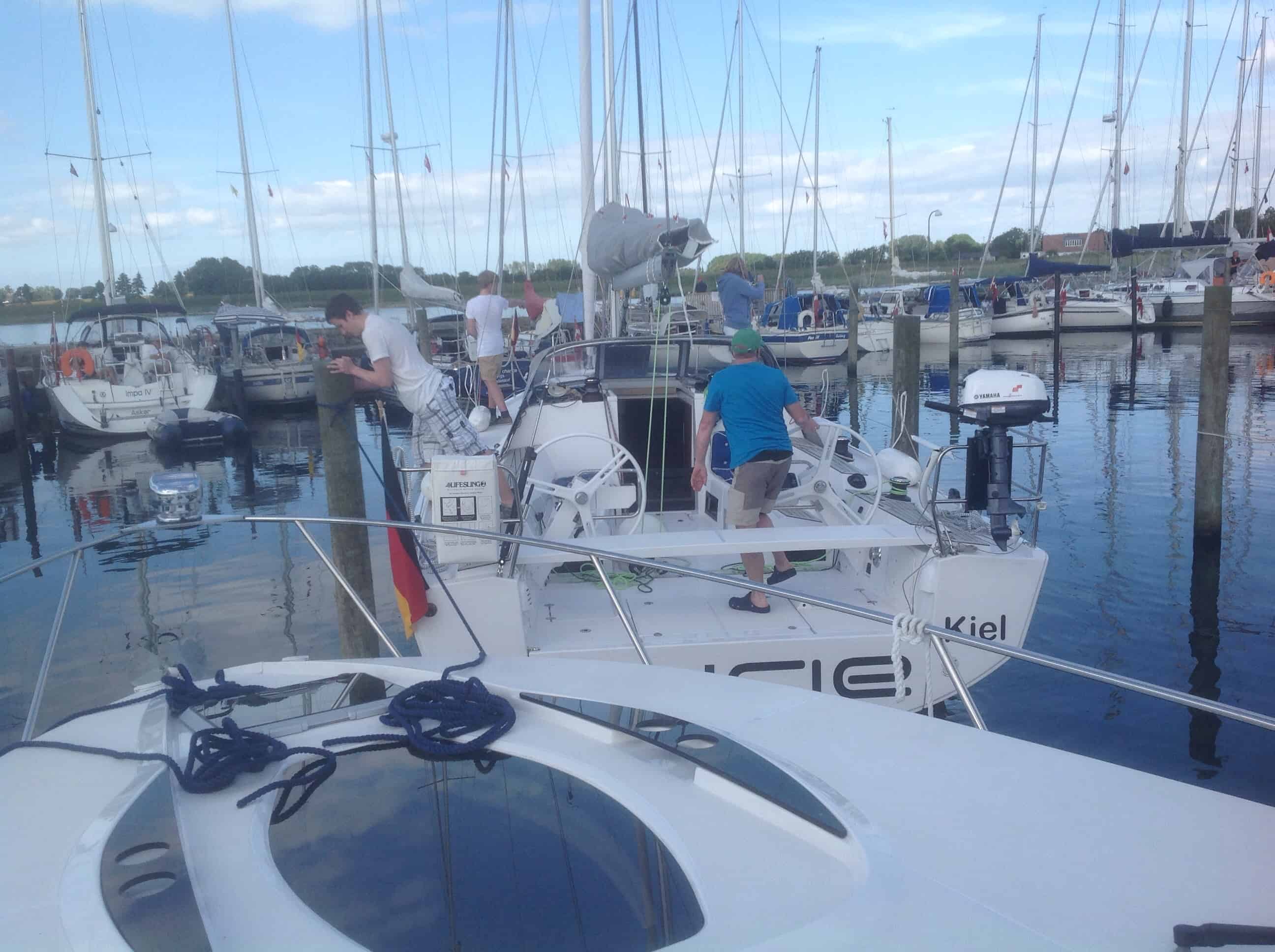 Noget af det hyggelige ved at være i havn, er også at kunne give en hjælpende hånd til andre sejlere, for vi vil jo selv så gerne have hjælpen, når vi kommer i fremmed havn……